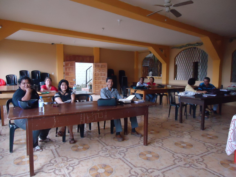 Taught "Genesis vs. Evolution" to about 40 seminary students. The students loved every minute even though we didn't have time to get into much of the scientific evidence. The class was split into two 4 hour sessions given Thursday and Friday evening. We were slowed because the teaching required interpreting from English to Spanish, and so we were unable to cover the last two sections on Cosmology and Geology. Sunday evening we invited the entire seminary class to the church where we completed the last two hours (picture below). The seminary did video the class, but we forgot to ask someone to take pictures for us so we have no photographs.