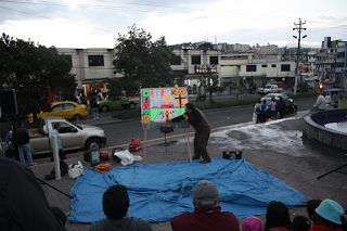 Wednesday 11/07 evening: Quito, Public street corner, sketch board and redeemer skit